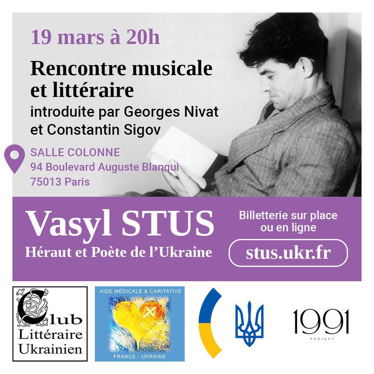 On 19 March at 8.00 pm, the Salle Colonne in Paris will host a musical and literary event entitled Vasyl Stus, Herald and Poet of Ukraine. The event will be opened by the French Slavicist Georges Niva and the Ukrainian philosopher Kostyantyn Sihov.
